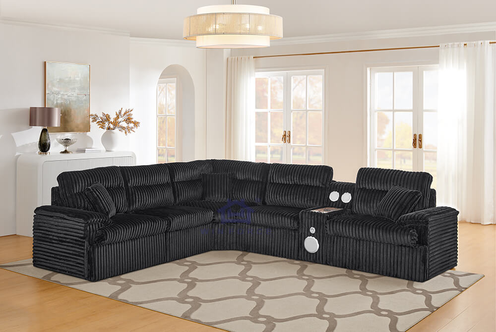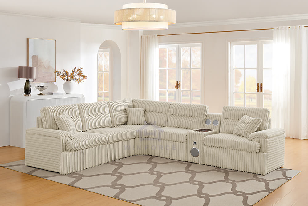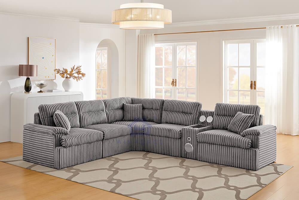 Modular L-Shape Sectional Sofa Corduroy Functional Sofa Living Room Furniture Set