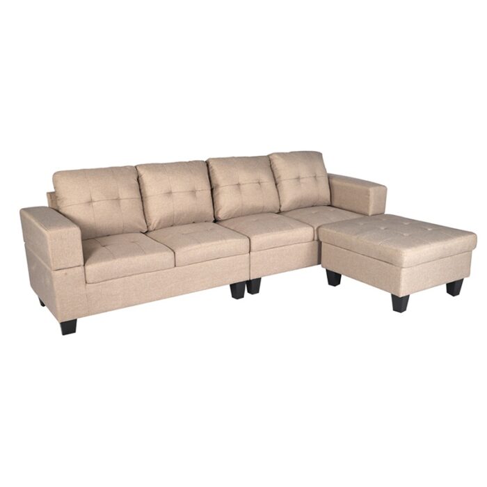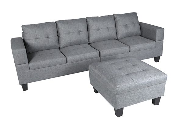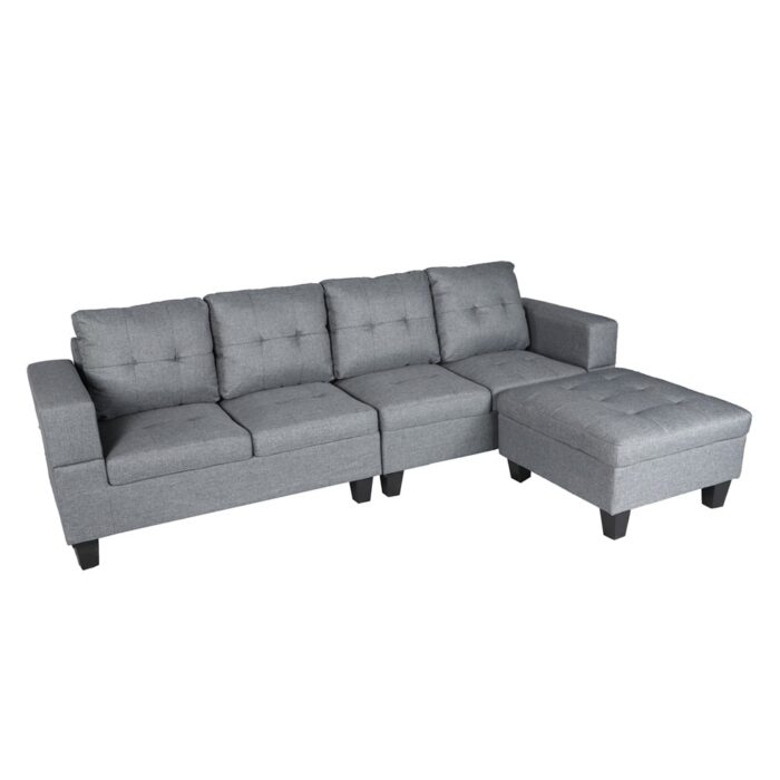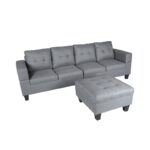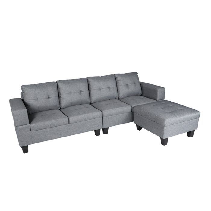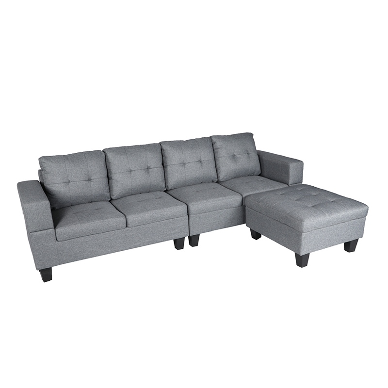 Winforce Classic Style Gray Linen Living Room Sofa Couch Modular Design L Shape Sectional Sofa With Ottoman